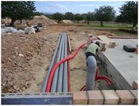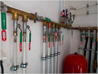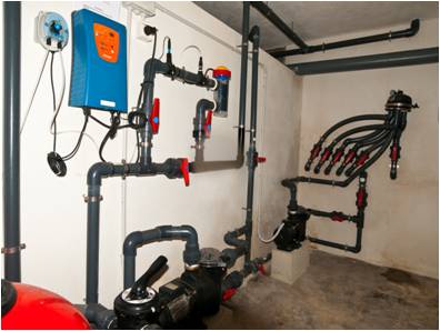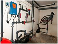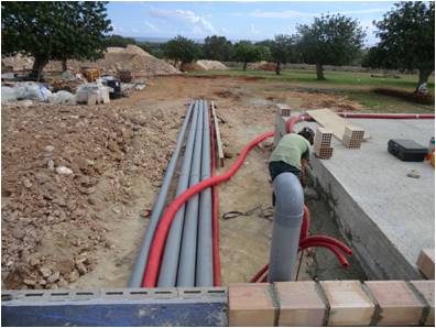 Instalación fontanería Preinstalación de aire acondicionado con fancoils Suelo radiante Acabados fontanería con sanitarios Roca y grifería Hansgrohe Placas solares Wolf para ACS Piscina con sistema limpiafondos Net Clean Caldera Wolf COB 29 Descalcificador Instalación de riego centralizado
